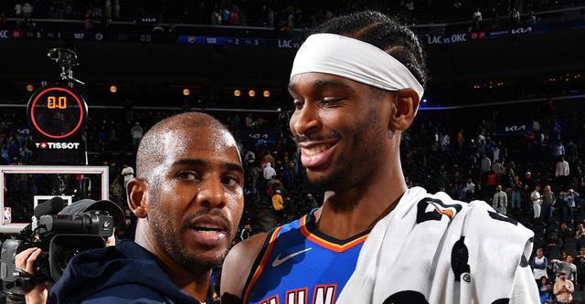 2019-20賽季,亞歷山大與保羅均效力雷霆,值得一提的是,那也是亞歷山大加盟雷霆的第一個(gè)賽季。(NBA官網(wǎng))